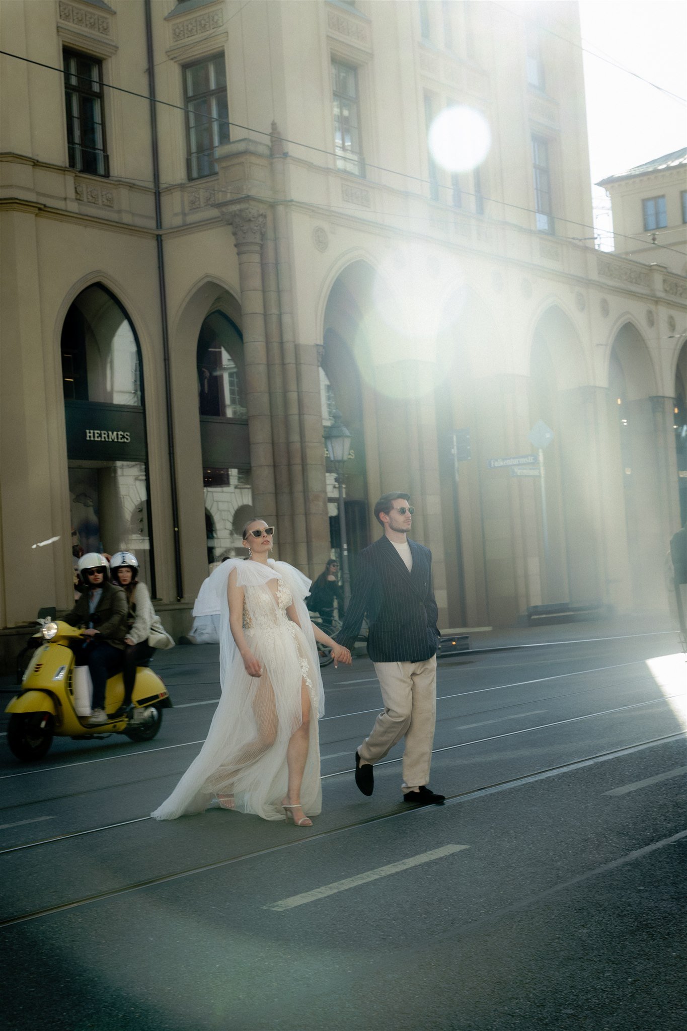 Sie schrecken auch nicht davor zurück, sich mal mitten auf die Straße zu legen, um die richtige Perspektive zu bekommen. Wir standen als Hochzeitspaar immer im Fokus, fühlten uns besonders und es fühlte sich nicht wie Dienstleistung an – eher so als würde ein befreundetes Paar Fotos von uns machen – deren Bilder und Aufnahmen dann aber im Ergebnis so niveauvoll und stilsicher sind, dass man eigentlich nur noch vor Glück weinen möchte.