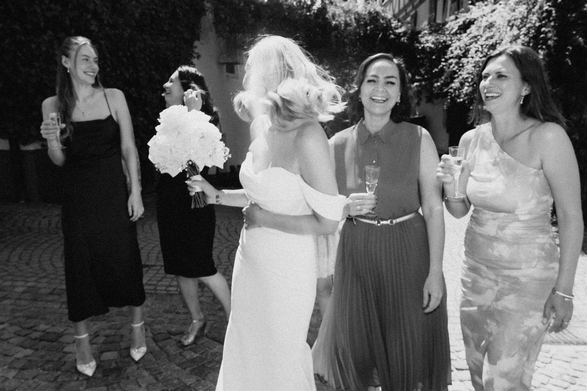 Während der Hochzeit war alles so unkompliziert wie zuvor. Ramona blieb trotz Trubel und der angespannten Situation zwischen den anderen Dienstleistern cool, hat sich die ganze Zeit neutral und professionell ihrer Arbeit gewidmet und hat immer im richtigen Moment abgeknipst. Schon beim getting ready sind so wunderschöne natürliche Bilder entstanden. Sascha hat sich in der Zeit um meinen Mann und seine Jungs gekümmert.
