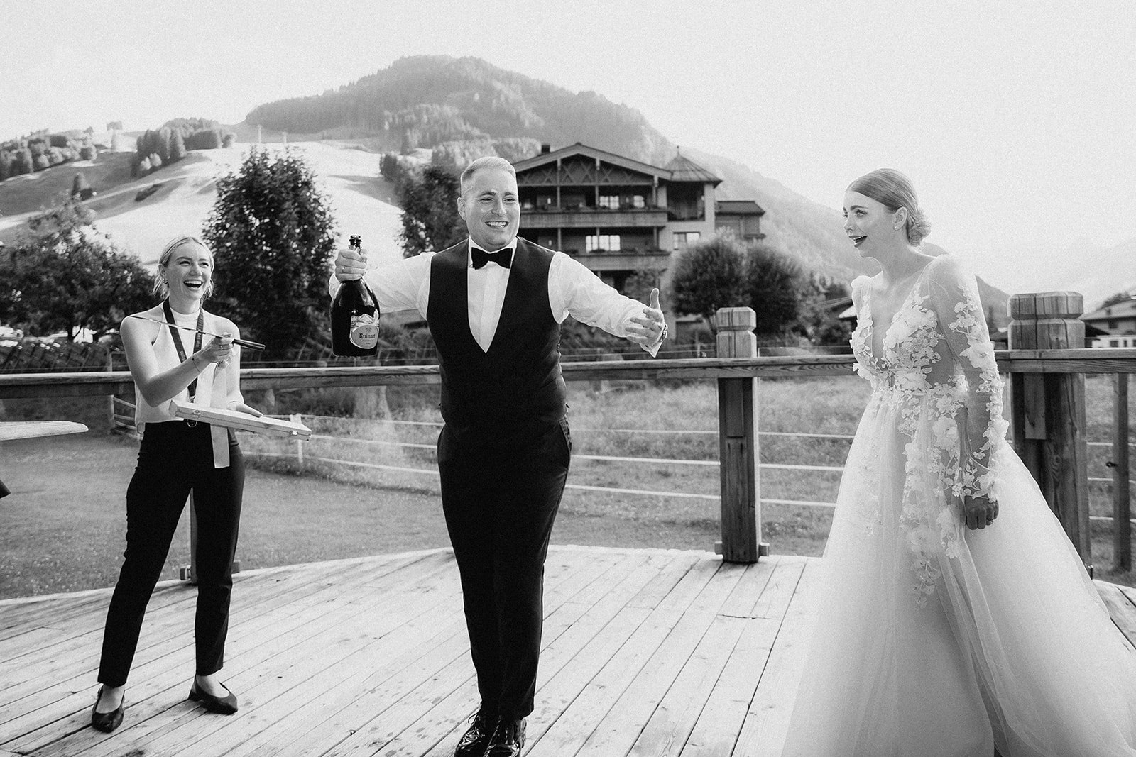 What more could you ask for on your wedding day? Sunshine from the first moment, crisp mountain air, the breathtaking scenery of the Kitzbühel Alps all around – and a couple so in love, you’d think the world stood still for them. Add a glass (or two) of cold champagne, lots of laughter, happy tears, and the quiet magic that only the mountains can offer. This wedding wasn’t just beautiful – it was unforgettable. As a wedding photographer in Kitzbühel, I get to witness moments like these up close. And honestly? It never gets old.